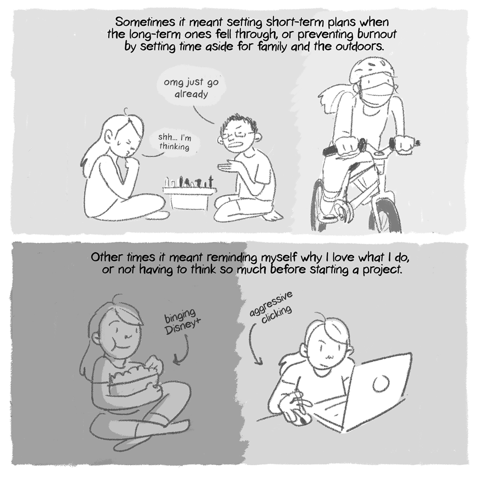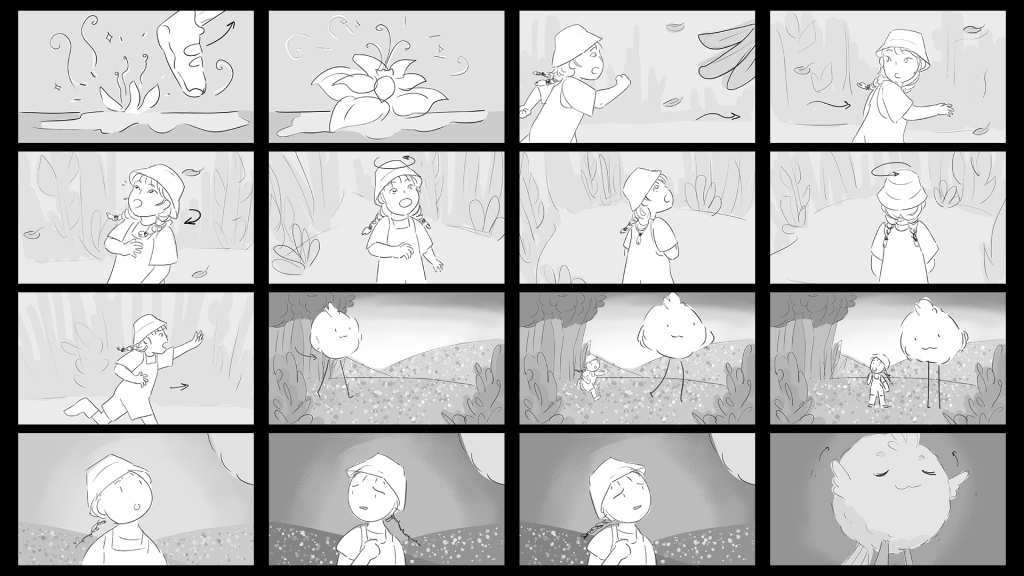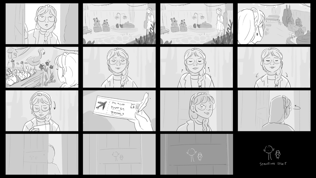 I was the Creative Director and Story Lead for my senior project team’s animation short, Sprouting Spirit. I was responsible for all storyboards and camera direction. I was also responsible for some of the prop modeling, layout, animation, and editing.